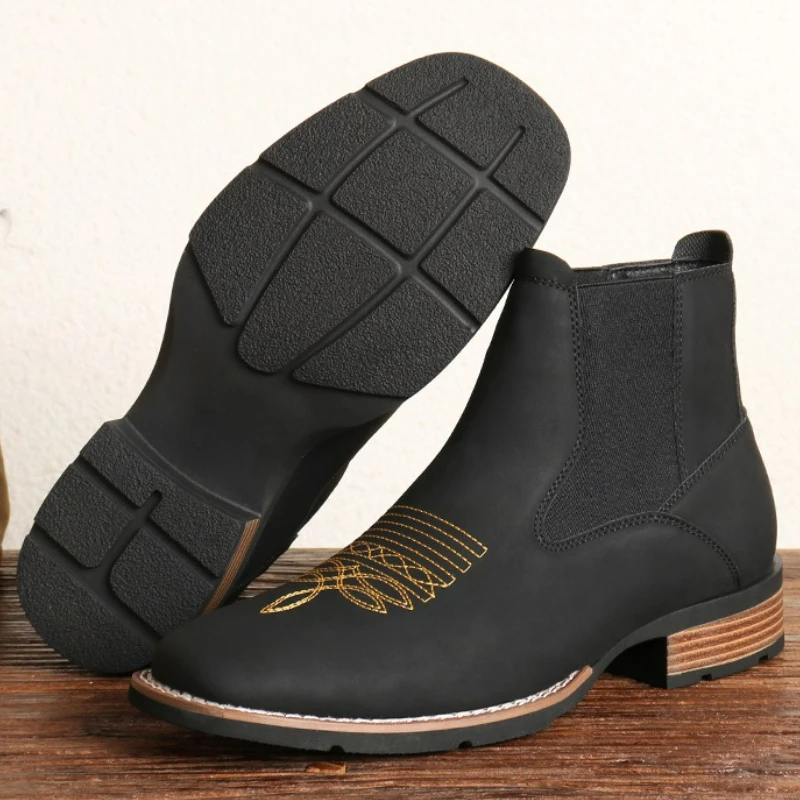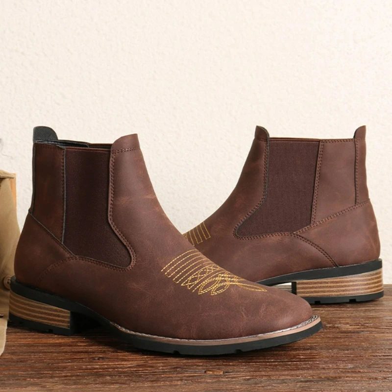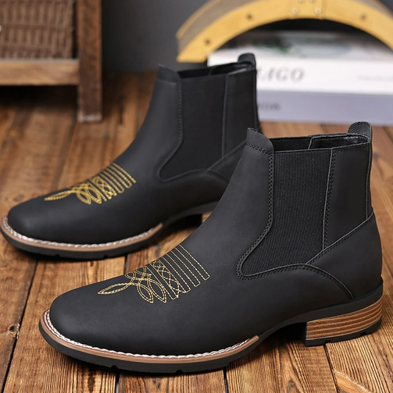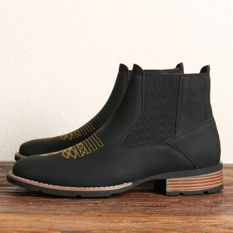 Botas chelsea masculinas de alta qualidade botas de couro casuais botas de tornozelo retrô para homens bordados bota de cowboy ocidental botas masculinas