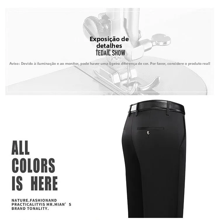 O processo de tratamento sem ferro das calças garante que elas permaneçam lisas e presentes, mesmo após várias lavagens.
