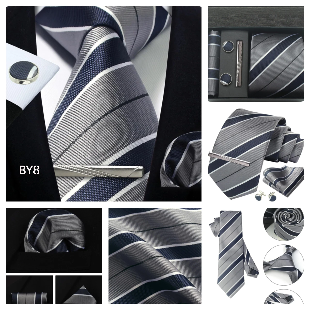 Tie set: Men tie & Pocket square & Cufflinks &Tie Clip