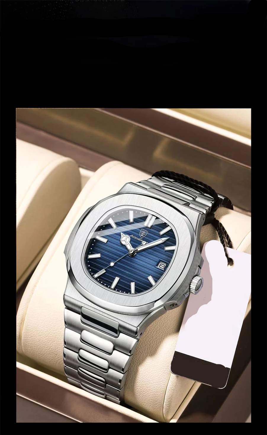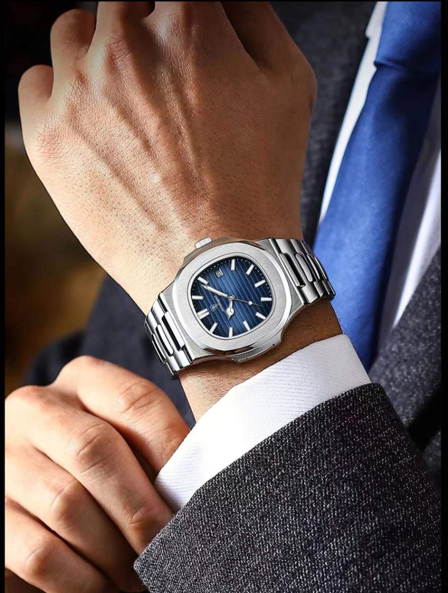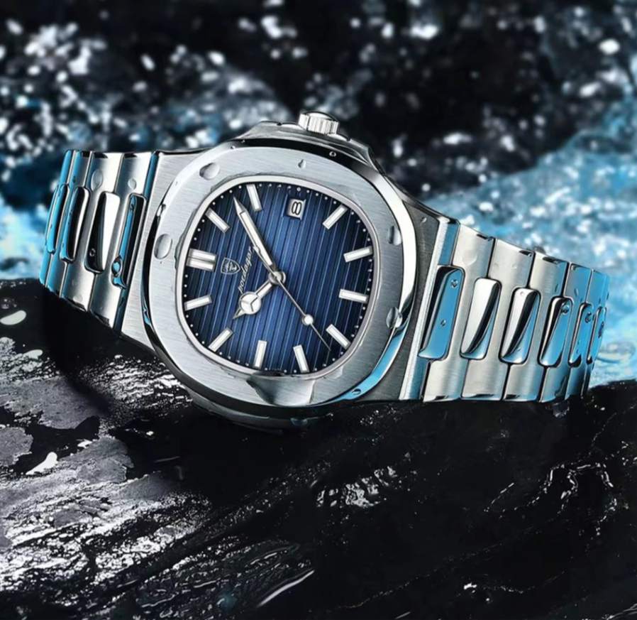 Relógio POEDAGAR Quartz: robusto, elegante e repleto de funções. Com caixa em liga metálica, pulseira em aço inoxidável e visor Hardlex, ele oferece cronômetro, calendário completo, data automática, mãos luminosas, resistência a choques e 3 BAR à prova d’água, ideal até para nadar. O fecho com botão oculto garante segurança e estilo. Um relógio fashion, versátil e altamente funcional para quem exige desempenho e presença no dia a dia.